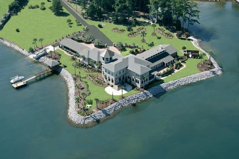 This private residence is located on the Lexington, SC side of Lake Murray. It is located on a private point, overlooking the Lake Murray Dam. The project was a renovation that included the reuse of an existing indoor pool and detached garage. The final design connected the garage and pool with a residence that included double, free-standing curved stairs, a tower overlooking the lake and a professionally designed theater.